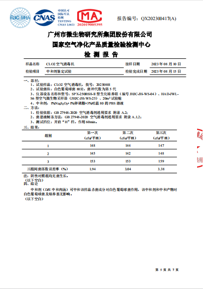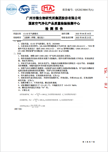 空气消毒机检测报告